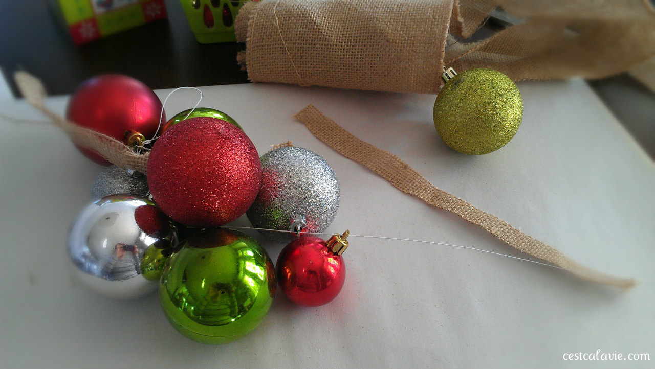C’est bientôt Noël et la joie des fêtes me donne une envie folle de bricoler… 🙂 La semaine dernière, je suis allée faire quelques magasins et j’ai vu une belle guirlande de boules de Noël à vendre à un prix exorbitant ! Je me suis dit: Ça se bricole une belle guirlande de boules de Noël comme ça!